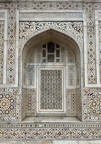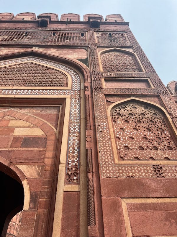 The Agra Fort and Baby Taj (otherwise known as the tomb of I'timād-ud-Daulah) showed similar themes and obvious references to the Taj. I preferred the humble scale and zany pattern combinations of the Baby Taj. Bonus points for its consistent and delightful use of a playful, marigold-colored stone. I lingered here for a while before heading home.